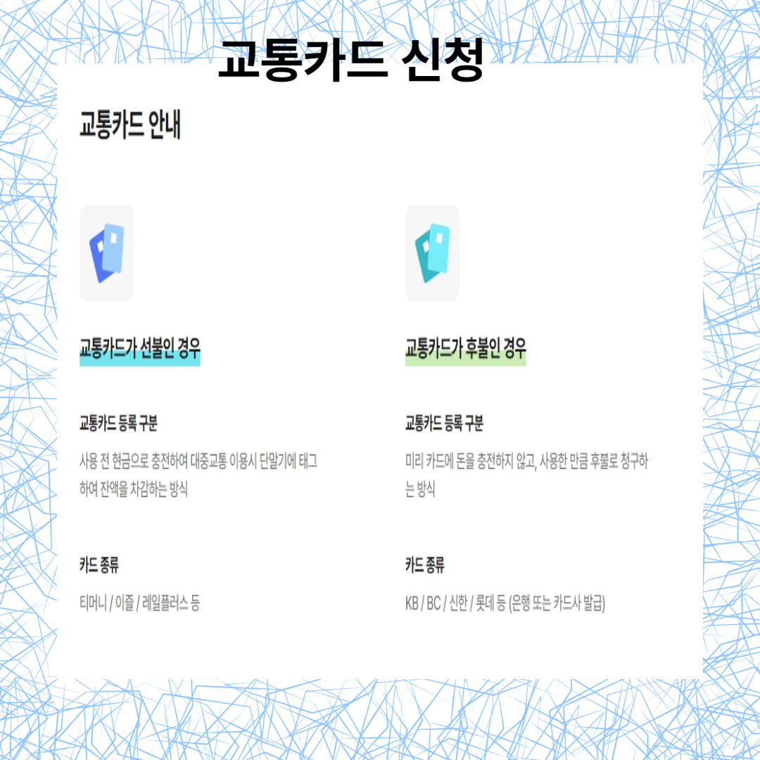 - 후불카드: KB, BC, 신한, 롯데 등 은행/카드사 발급