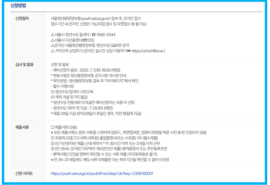 ✅2025 서울시 청년월세지원금 신청방법(+지급일 )