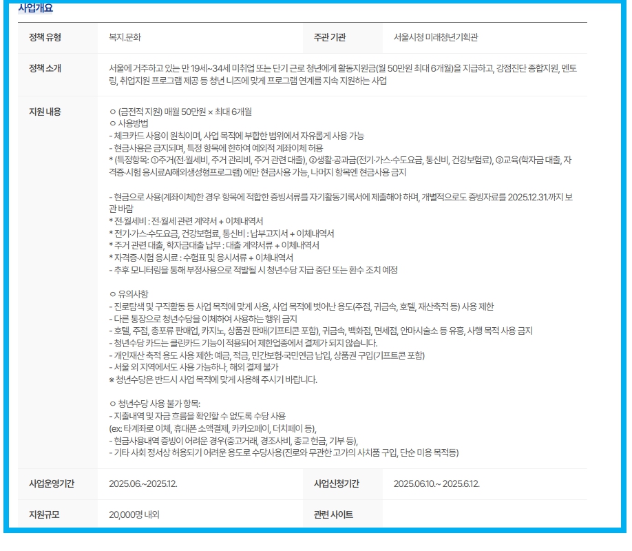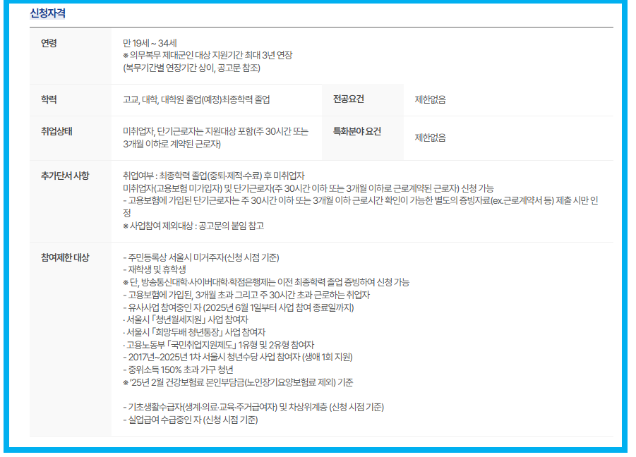 - 중복지원 불가: 국민취업지원제도, 내일배움카드, 청년내일채움공제 등 참여자는 제외