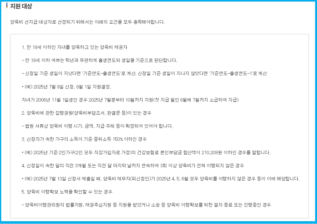 자녀 연령, 소득 기준, 양육비 미지급 여부, 법적 조치 유무 등 요건을 반드시 확인하세요!
